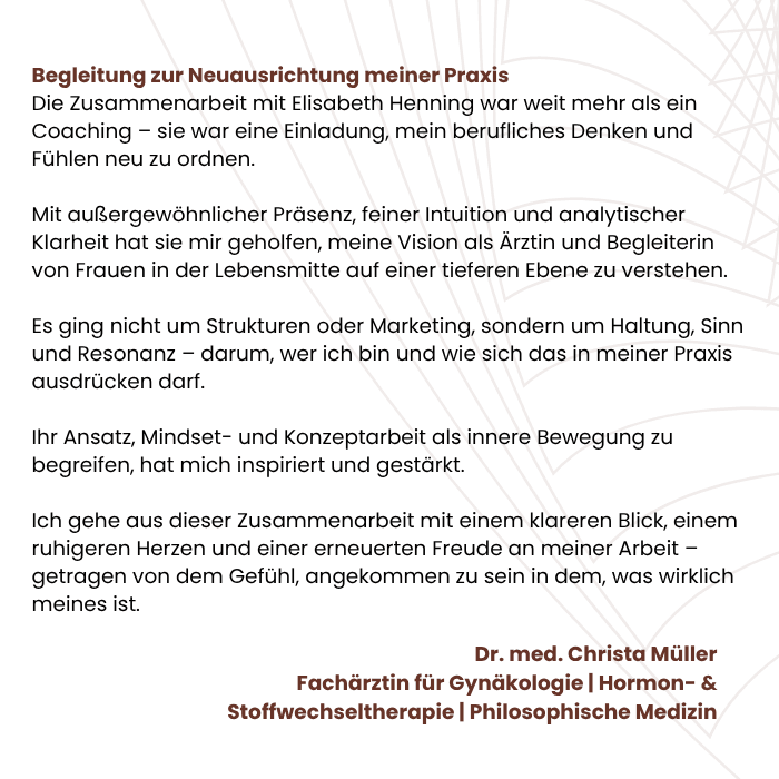 Wir unterstützen Entscheider, Gründer und Führungskräfte dabei, ihr nächstes Kapitel bewusst zu gestalten – sei es bei der persönlichen Transformation, der strategischen Neupositionierung oder der nachhaltigen Geschäftsentwicklung.